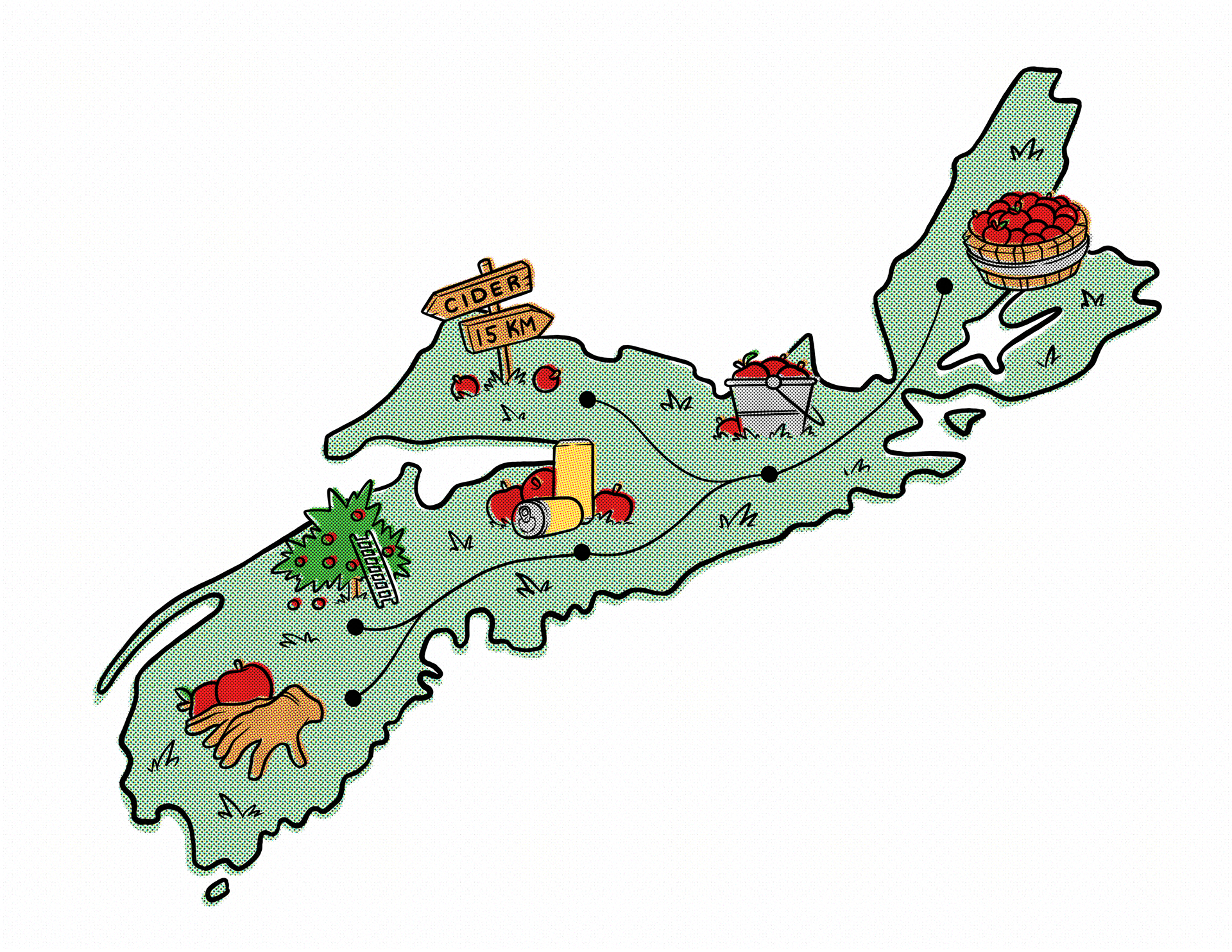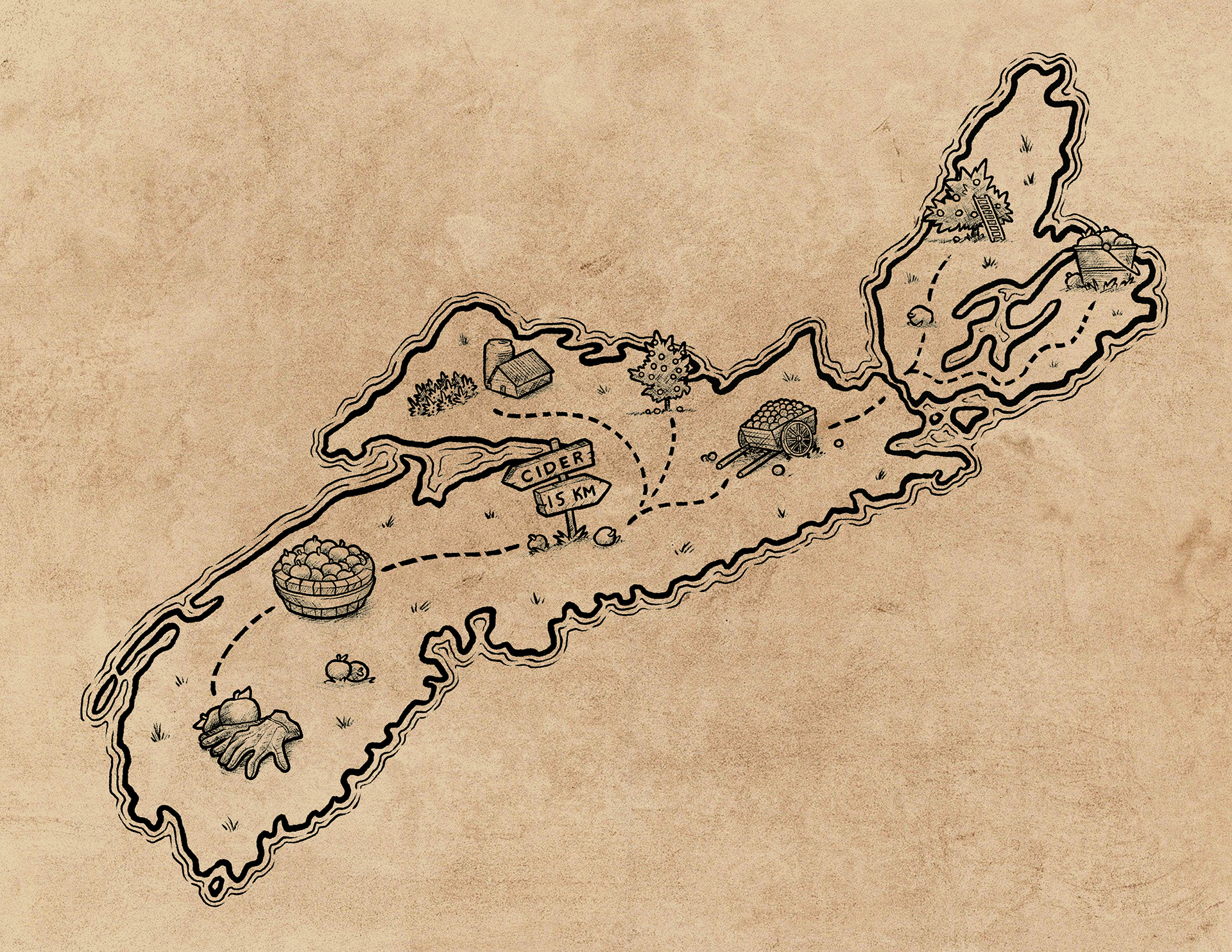The client asked for a number of conceptual illustrations in different art styles themed around the Nova Scotian apple cider industry, with a tight turnaround.